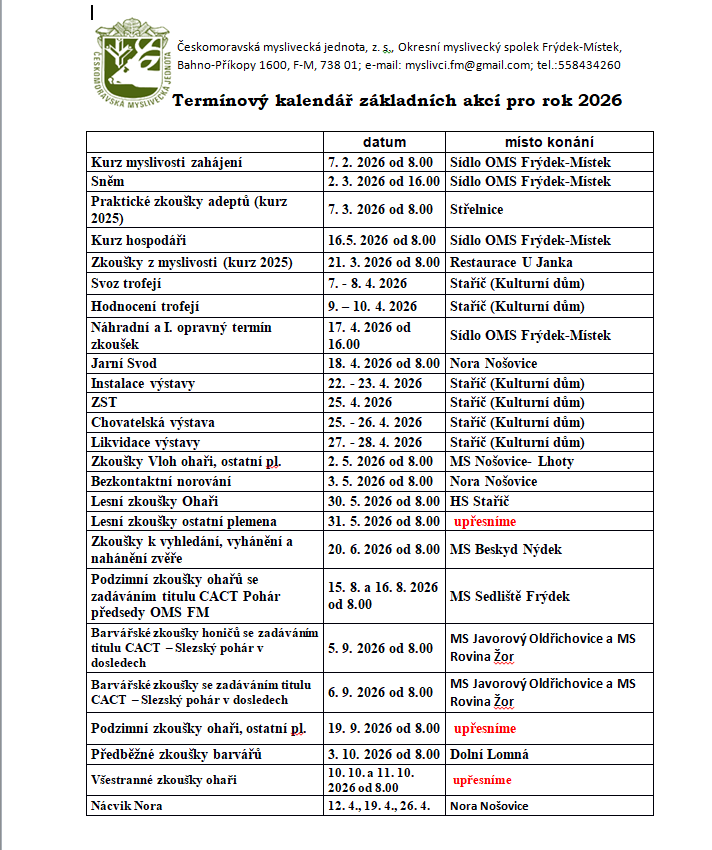 Vyplněnou přihlášku na zkoušky / jarní svod, zašlete spolu s oboustrannou kopií PP na myslivci.fm@gmail.com.
