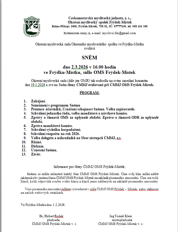 - Projednat na nejbližší myslivecké radě diskusní příspěvky sněmu.